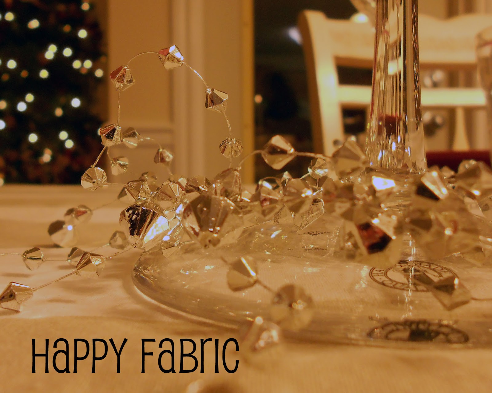I have a couple of table-related photos and thoughts to share on this, the first day of 2013. This year, I rebelled against making a traditional turkey dinner on Christmas Day. I like turkey, but it is not my favourite. I also wanted to try hosting our big dinner on Christmas Eve, for a change. There were only six of us, but I set the table with festive dishes and lots of sparkling, glittering decorations and candles - I think it turned out really pretty!